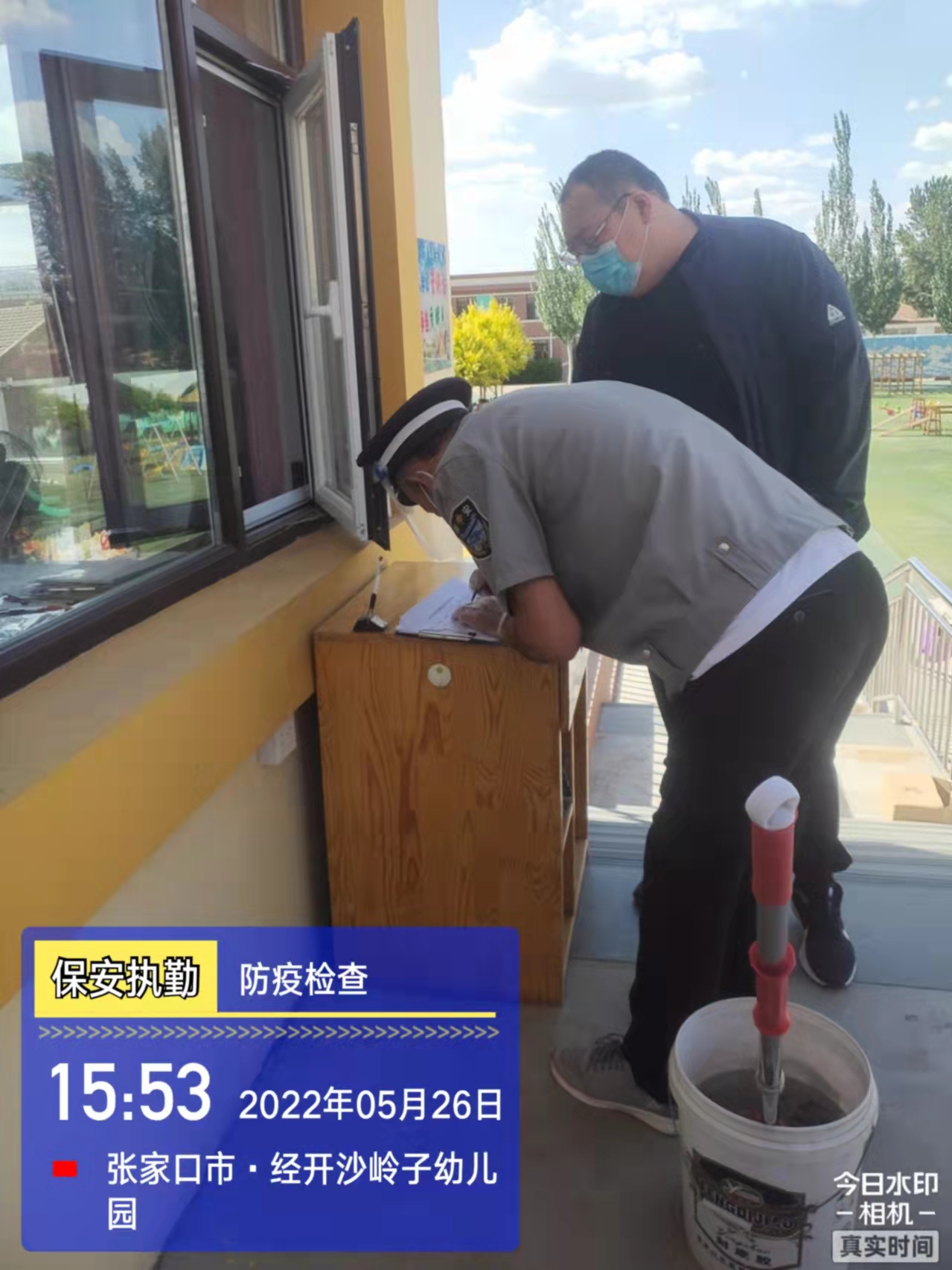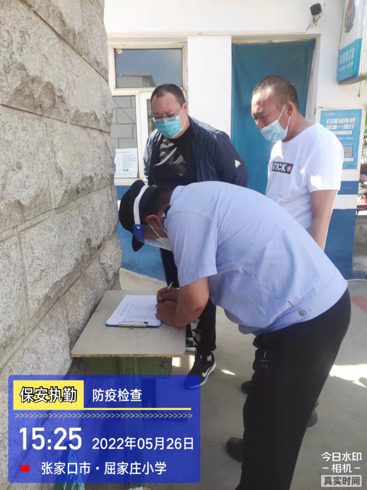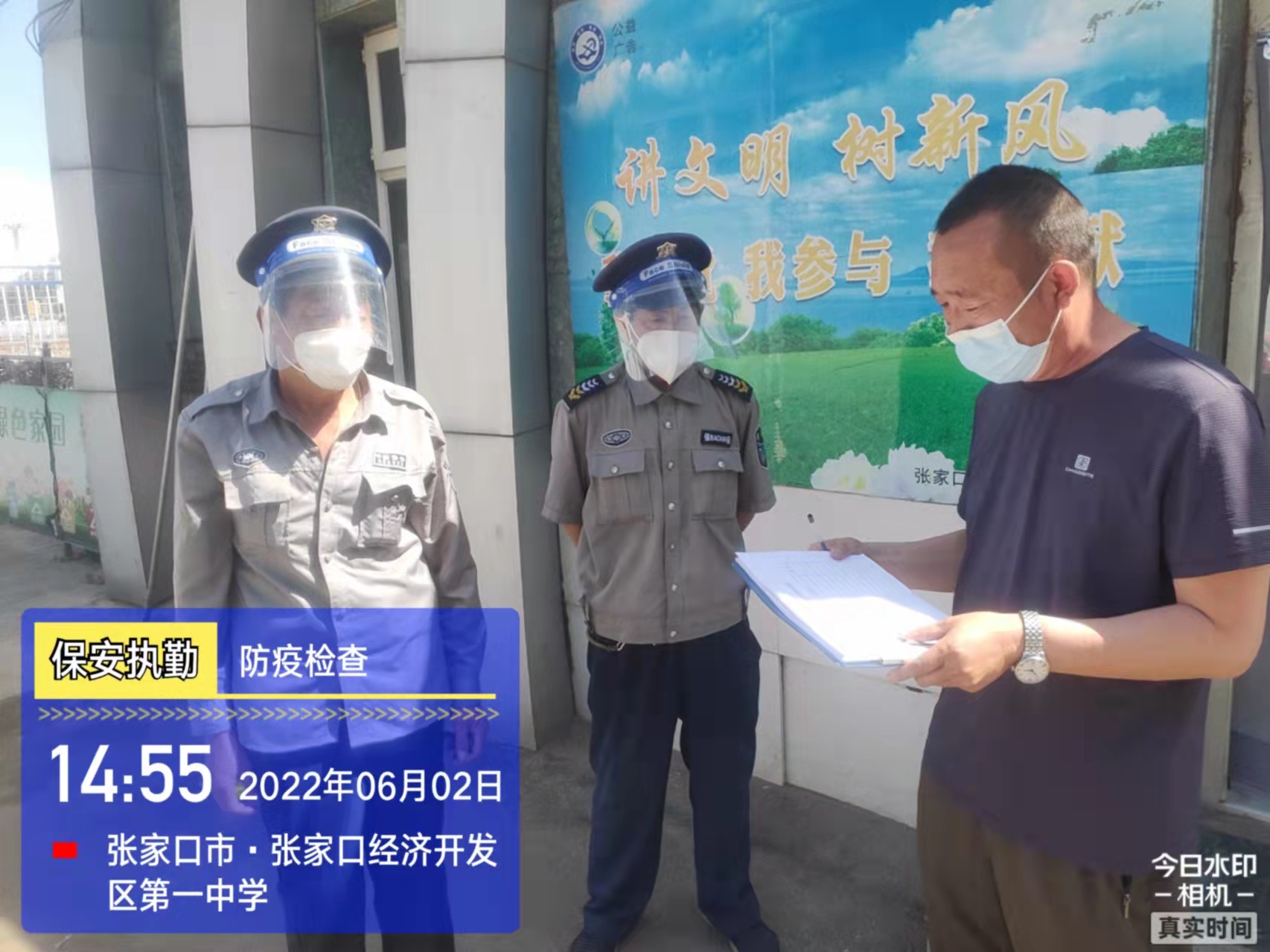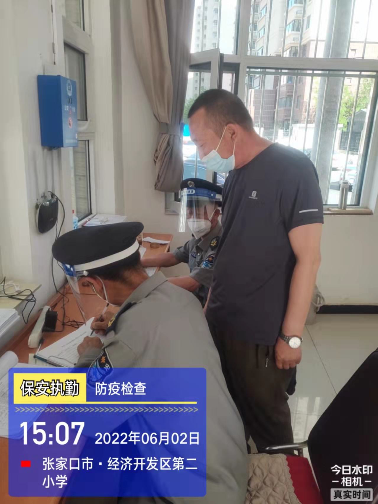 會后,我公司迅速召開“疫情期間學(xué)校門衛(wèi)安全防控工作要求”的會議,制定了校園安全防疫規(guī)定:疫情防控期間,校園保安隊員必須穿制服,規(guī)范佩戴“三件套”(防護隔離面罩、N95口罩、一次性PVC手套);進出校園的師生必須測量體溫,外來人員需登記、測溫、掃碼(幸福張家口,呈綠碼)、且持7日內(nèi)核酸陰性檢測結(jié)果;保安室需保持干凈整潔,物品擺放有序,勤開窗通風(fēng),定期噴灑消毒藥水。為此,公司特成立校園防疫檢查小組,由副經(jīng)理帶隊,協(xié)同主管大隊長對經(jīng)開區(qū)所有中小學(xué)校安保崗位進行防疫工作檢查,檢查期間,發(fā)現(xiàn)問題,現(xiàn)場處理,并及時與校方領(lǐng)導(dǎo)溝通,杜絕同樣問題再次出現(xiàn),確保校園防疫安保工作萬無一失,為各校師生鑄就一道安全防線!